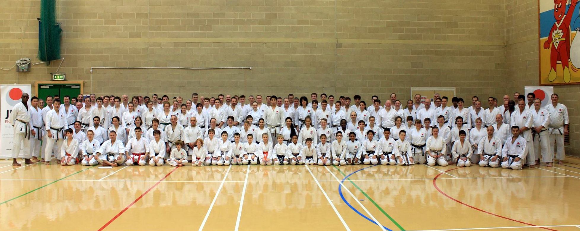 (Click to Enlarge) Sensei Shahinaz Pelter & Patrick Pelter with Sensei Ohta, Sensei Ogane and JKA England members at the JKA England Weston Super Mare Course in December 2015